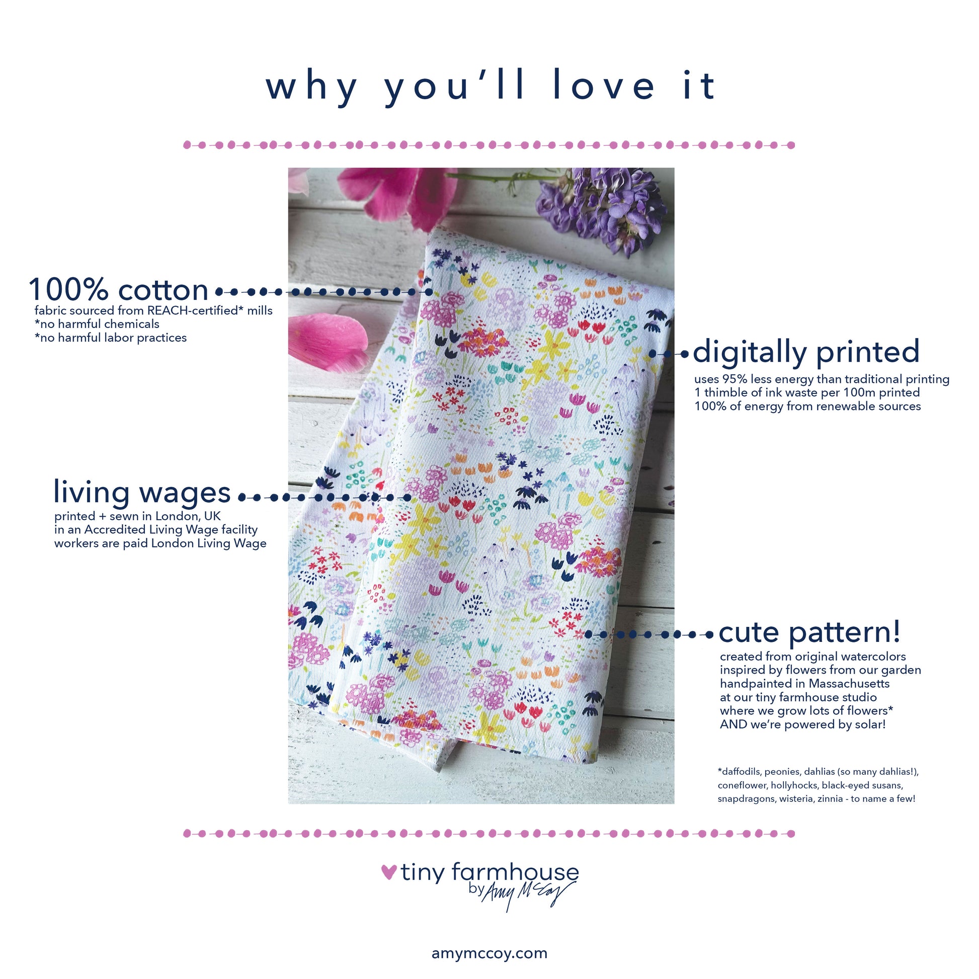 - fabric is sourced from REACH-compliant mills, an EU regulation regarding production and use of chemicals and their impact on human health and the environment