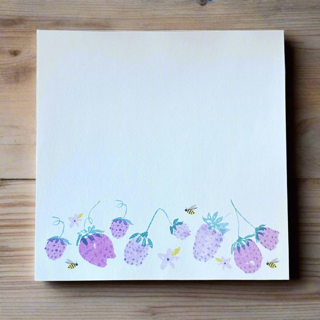 from an original watercolor painted by Amy, these strawberries are more pink and muted than in real life, but just as sweet