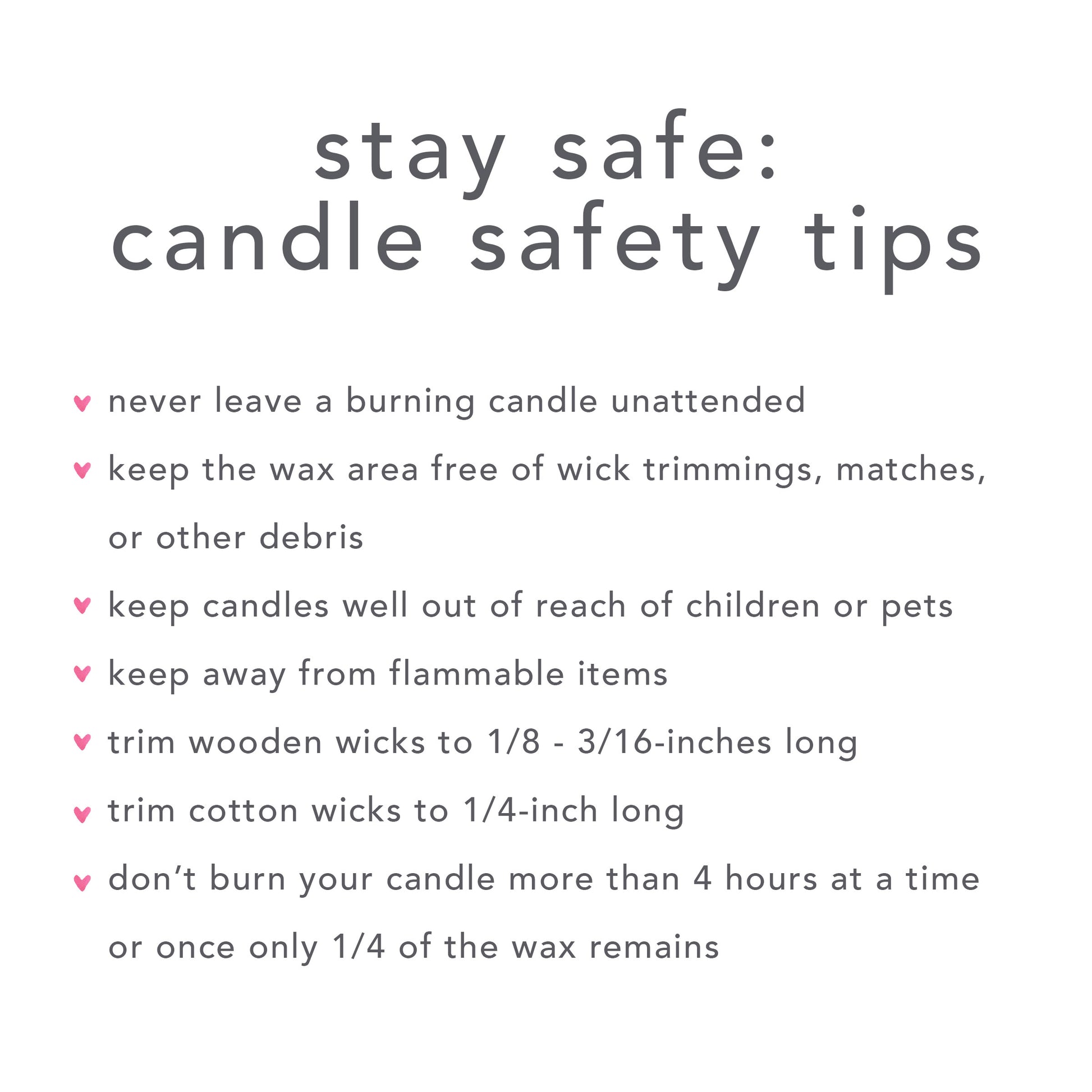 - don't burn your candle more than 4 hours at a time or once only 1/4 of the wax remains