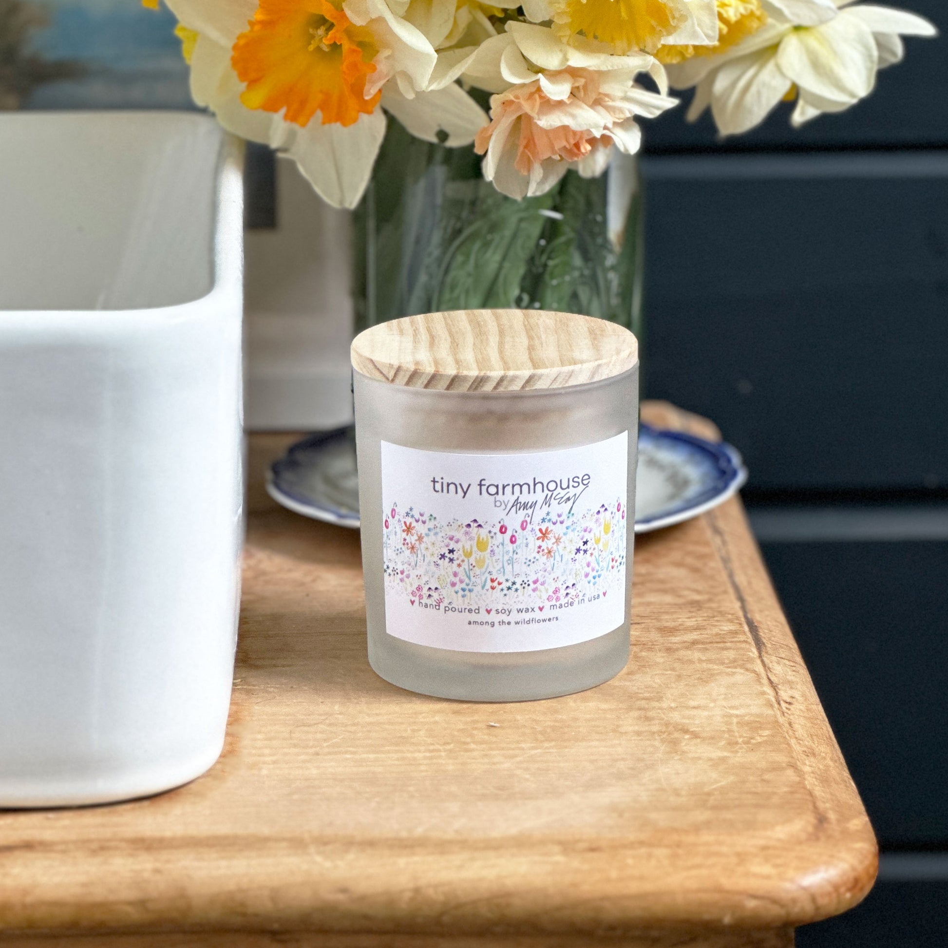 Yellow Tulip Garden among the wildflowers hand-poured soy wax candle (11oz)